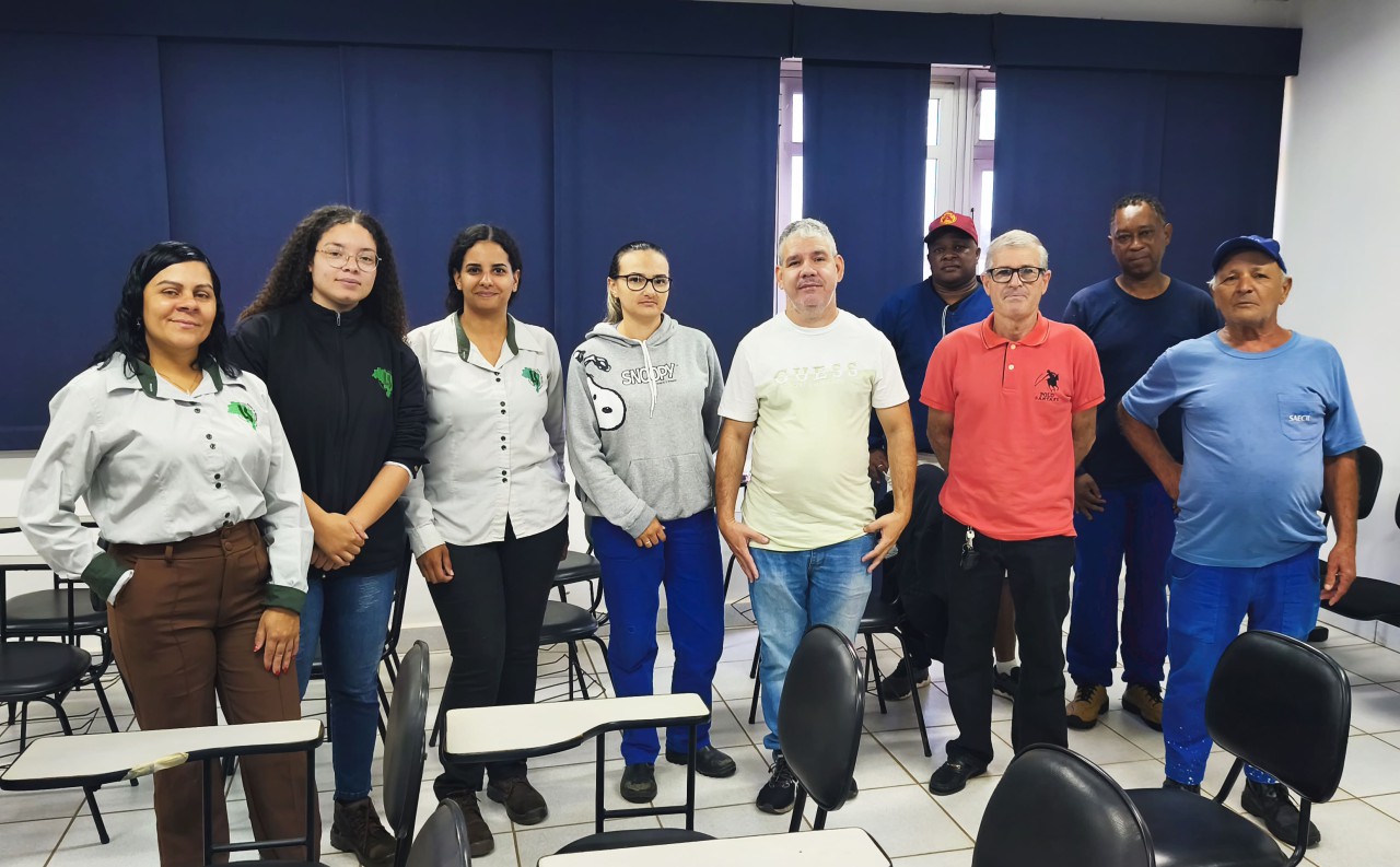 A palestra foi conduzida pela empresa LS Segurança do Trabalho, que orientou os participantes sobre o manuseio adequado de roçadeiras e a importância do uso correto dos equipamentos de segurança no dia a dia das atividades.