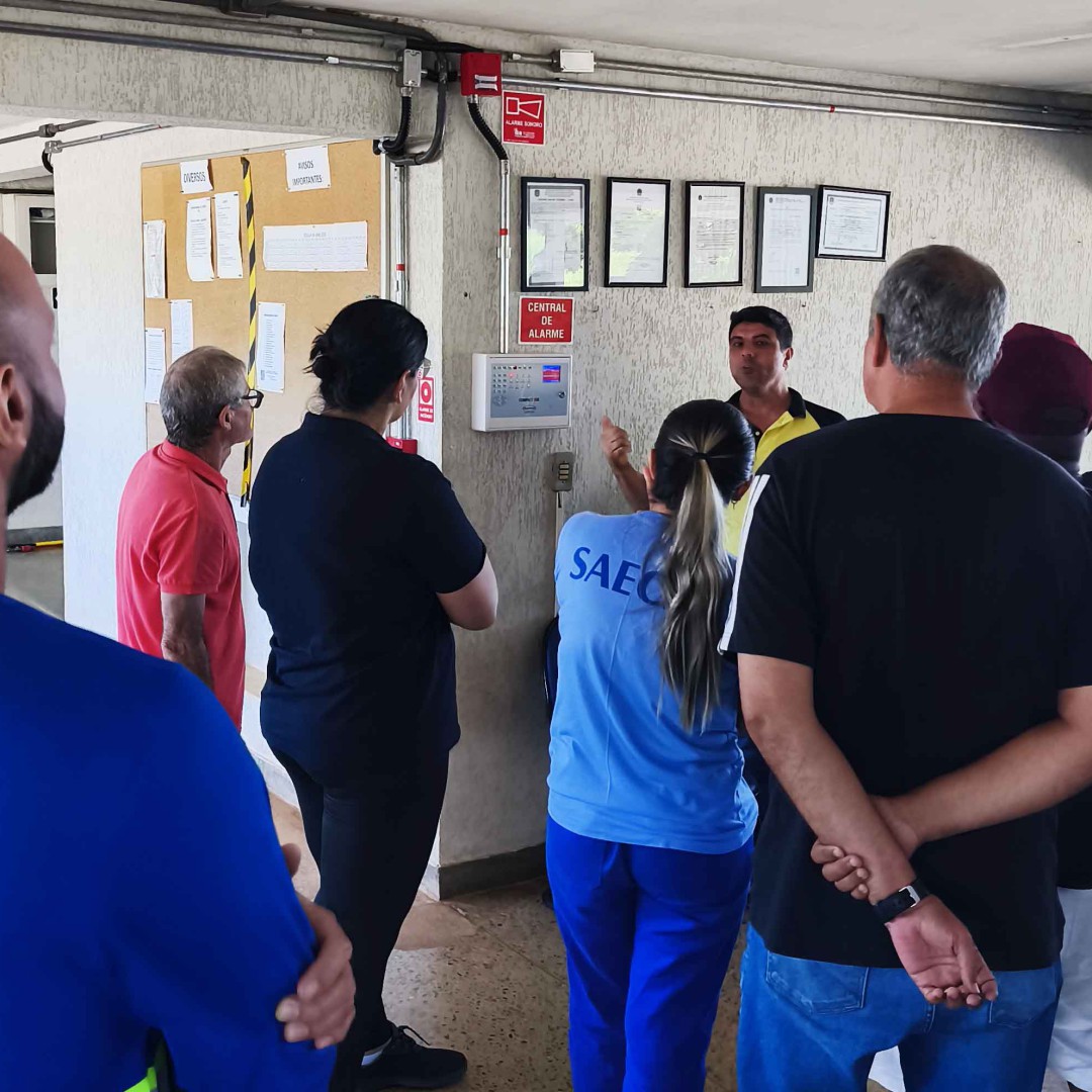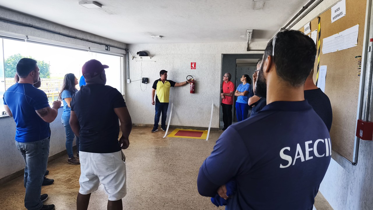 Durante o treinamento, os servidores receberam instruções práticas sobre como realizar resgates em situações de afogamento e quais são os primeiros cuidados a serem adotados até a chegada do socorro especializado. Também foram apresentadas orientações sobre o uso correto de extintores de incêndio, suas finalidades e funcionamento, além de explicações sobre a central de alarme e os procedimentos para acionamento em casos de emergência.