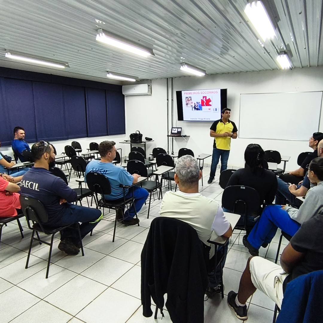 O instrutor Thiago Silveira, engenheiro civil e especialista em segurança do trabalho da Bela Casa Engenharia e Arquitetura, ministrou conteúdos voltados a primeiros socorros e à atuação em casos de incêndio. Entre os principais pontos abordados, destacou-se o risco de afogamento nas unidades da ETA, considerado um dos mais relevantes para os trabalhadores do setor.