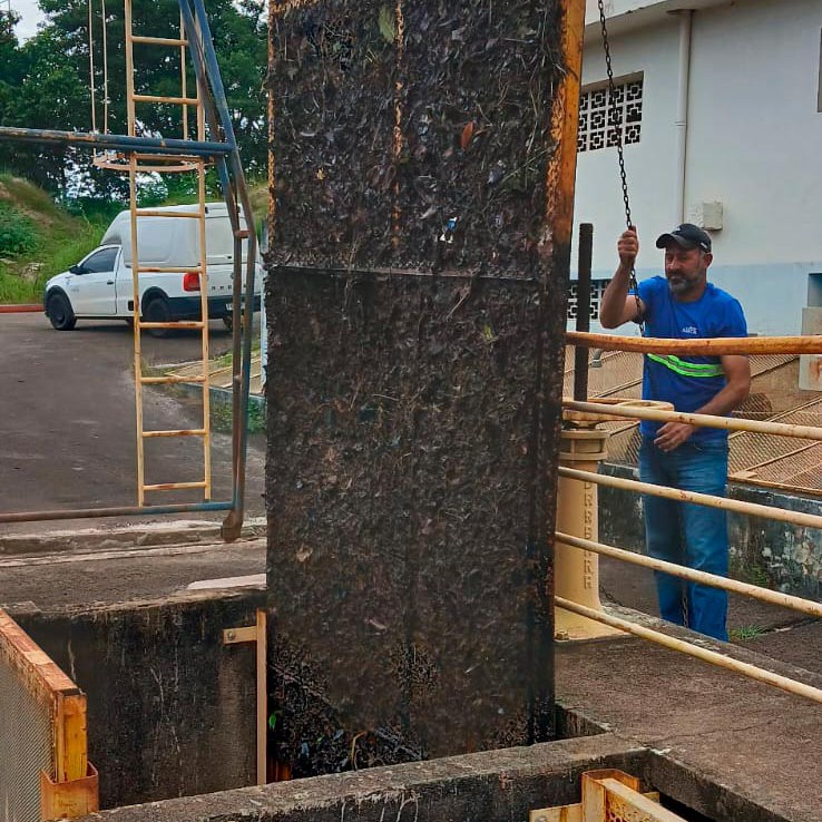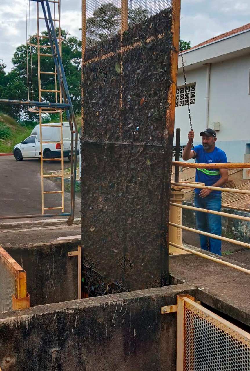 A manutenção é necessária para a retirada de material orgânico (areia, folhas, galhos etc.) acumulado no rio devido às fortes chuvas em nossa região, procedimento fundamental para melhorar o processo de captação de água e, consequentemente, sua qualidade antes de ser encaminhada à Estação de Tratamento de Água (ETA) do município.