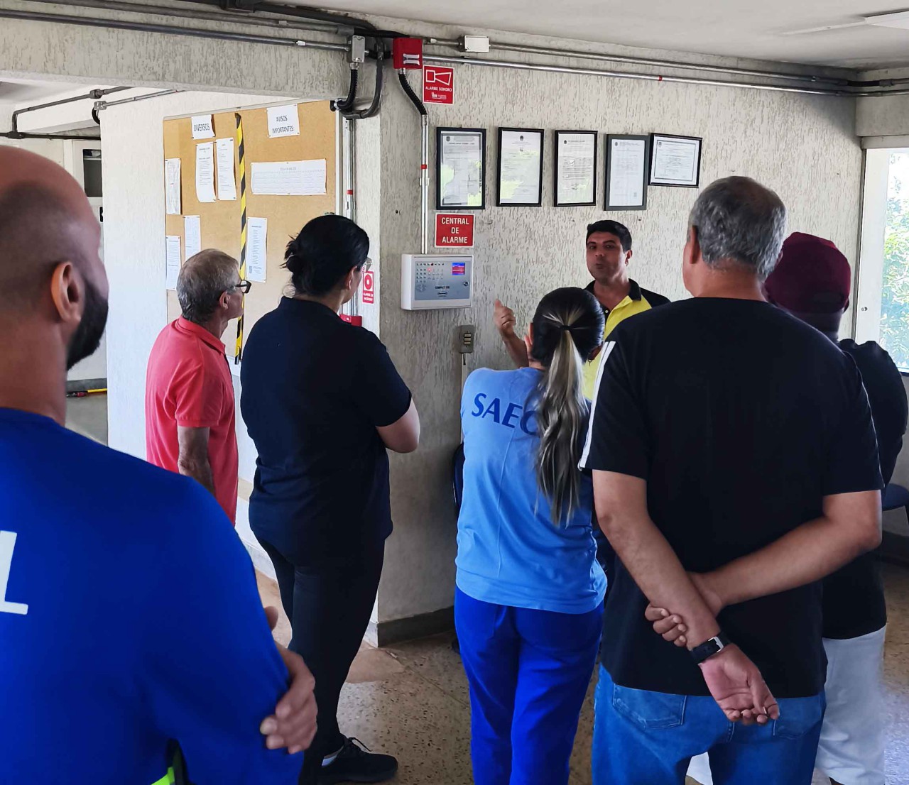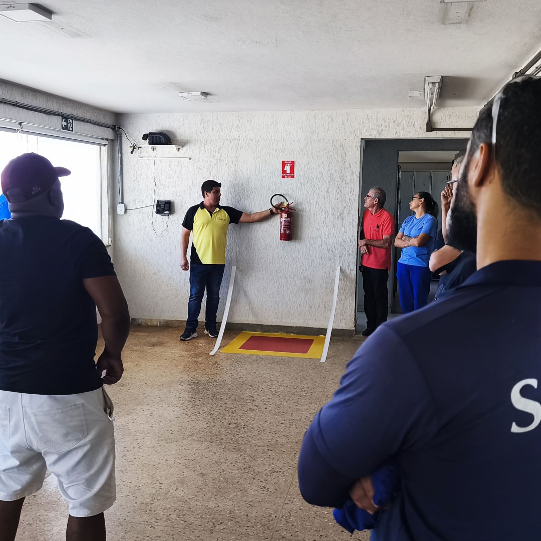 Durante o treinamento, os servidores receberam instruções práticas sobre como realizar resgates em situações de afogamento e quais são os primeiros cuidados a serem adotados até a chegada do socorro especializado. Também foram apresentadas orientações sobre o uso correto de extintores de incêndio, suas finalidades e funcionamento, além de explicações sobre a central de alarme e os procedimentos para acionamento em casos de emergência.